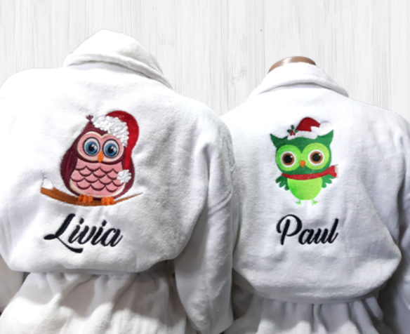 Set 2 halate premium Craciun, personalizate Nume*Bufnita, bumbac 100%